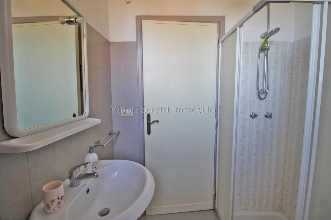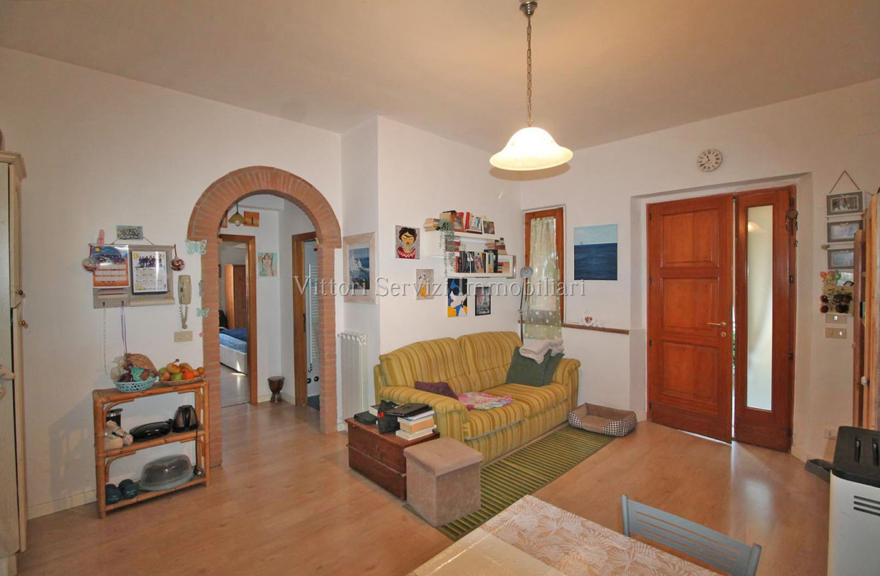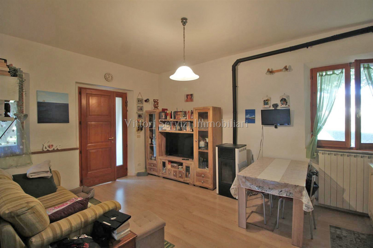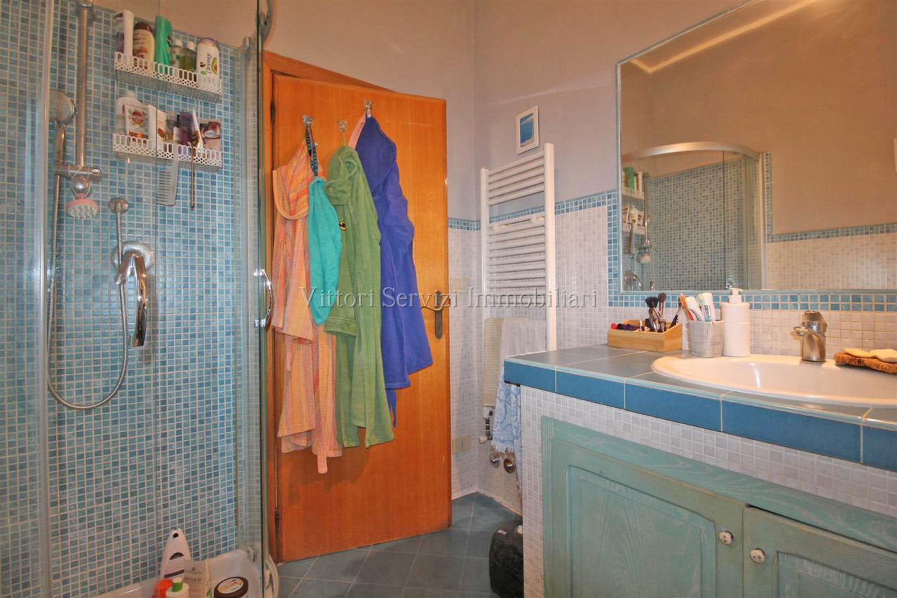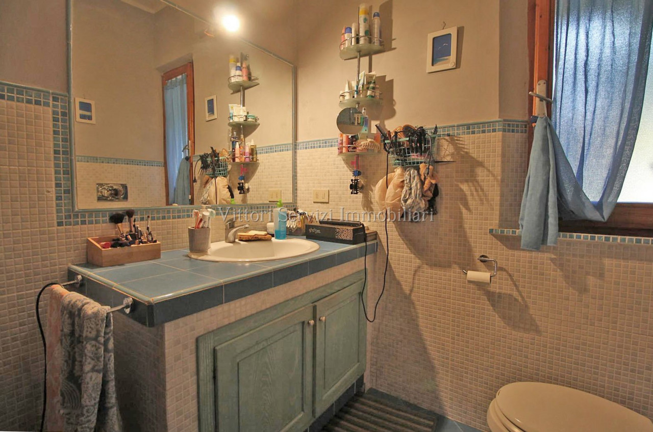 In zona collinare, con bella vista panoramica, si propone la vendita di villa di complessivi mq. 370 con giardino privato ed uliveto di complessivi mq. 2500. La proprietà si compone al piano terreno di: A) Bilocale di mq. 48 con soggiorno con cucinotto, camera e bagno finestrato con doccia. B) Trilocale di mq. 72 con soggiorno con angolo cottura, due camere matrimoniali, bagno finestrato con doccia e ripostiglio. Entrambe le unità sono state oggetto di ristrutturazione nel 2010. Al piano primo troviamo ulteriore appartamento di mq. 126, da recuperare, composto di ampio soggiorno e cucina con affaccio su terrazza abitabile, due camere matrimoniali, camera singola con bagno privato, bagno principale finestrato con doccia e studio. Completa la proprietà locali ad uso magazzino al piano seminterrato di mq. 100 e locali accessori (vano tecnico e monolocale) di mq. 24 al piano terreno. Contesto tranquillo immerso nel verde a breve distanza dai principali servizi.