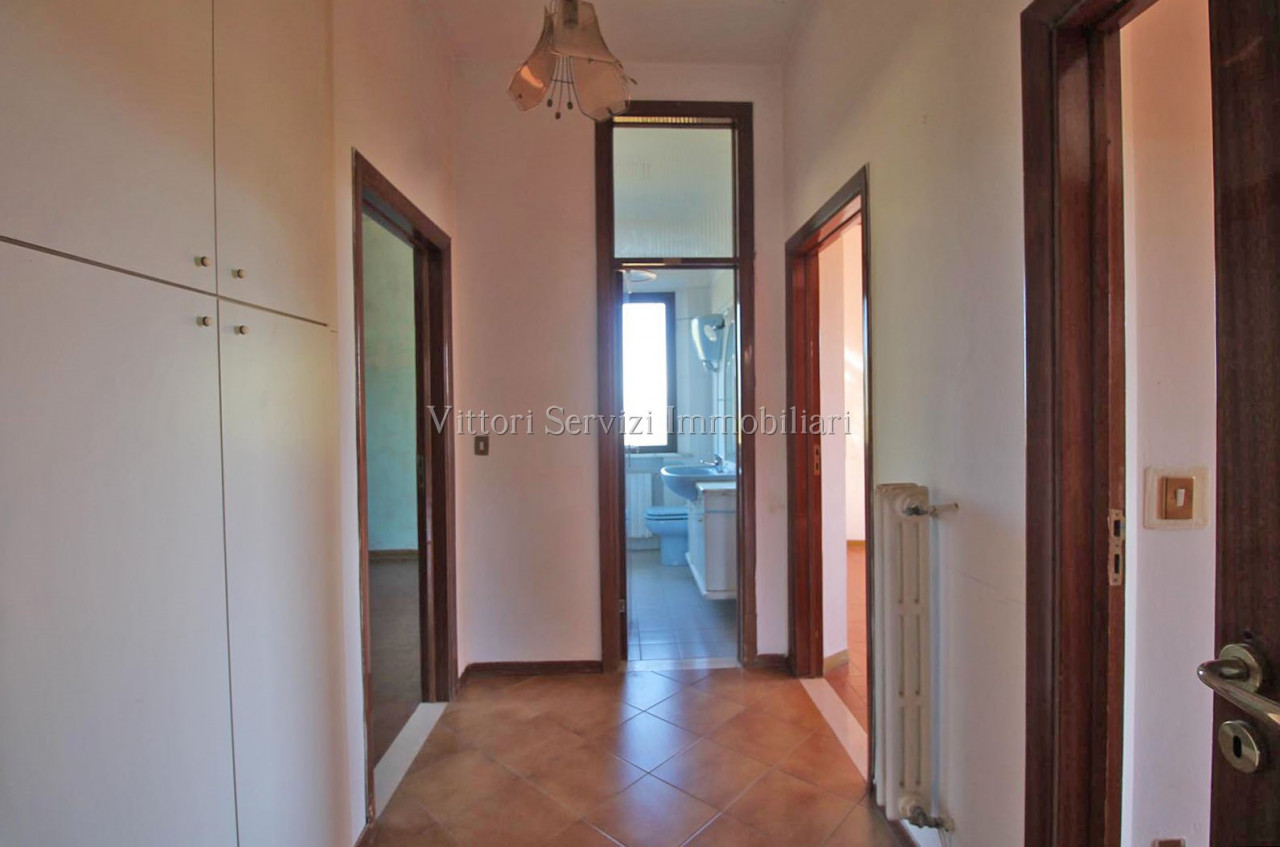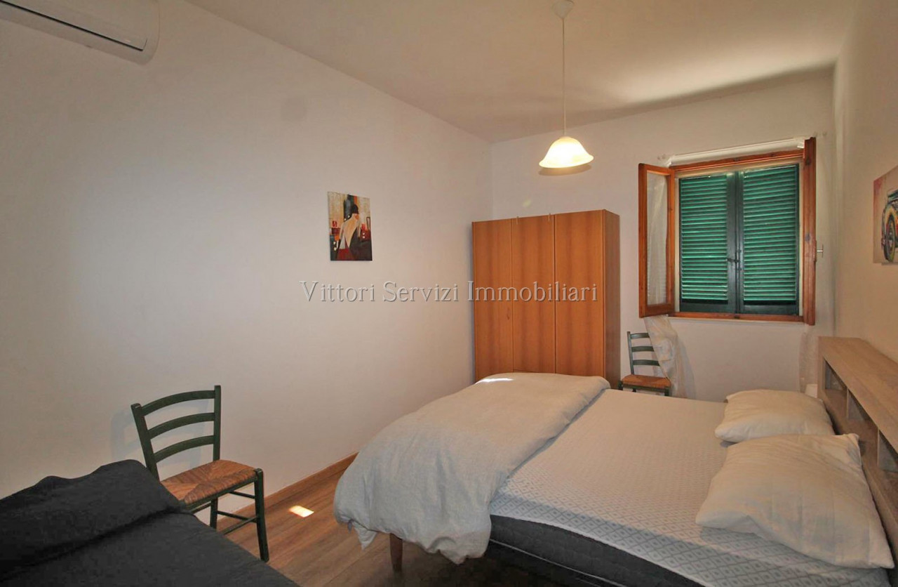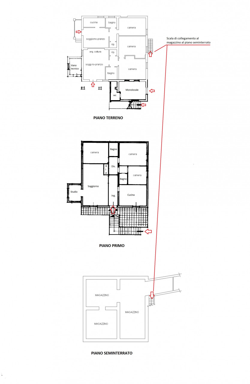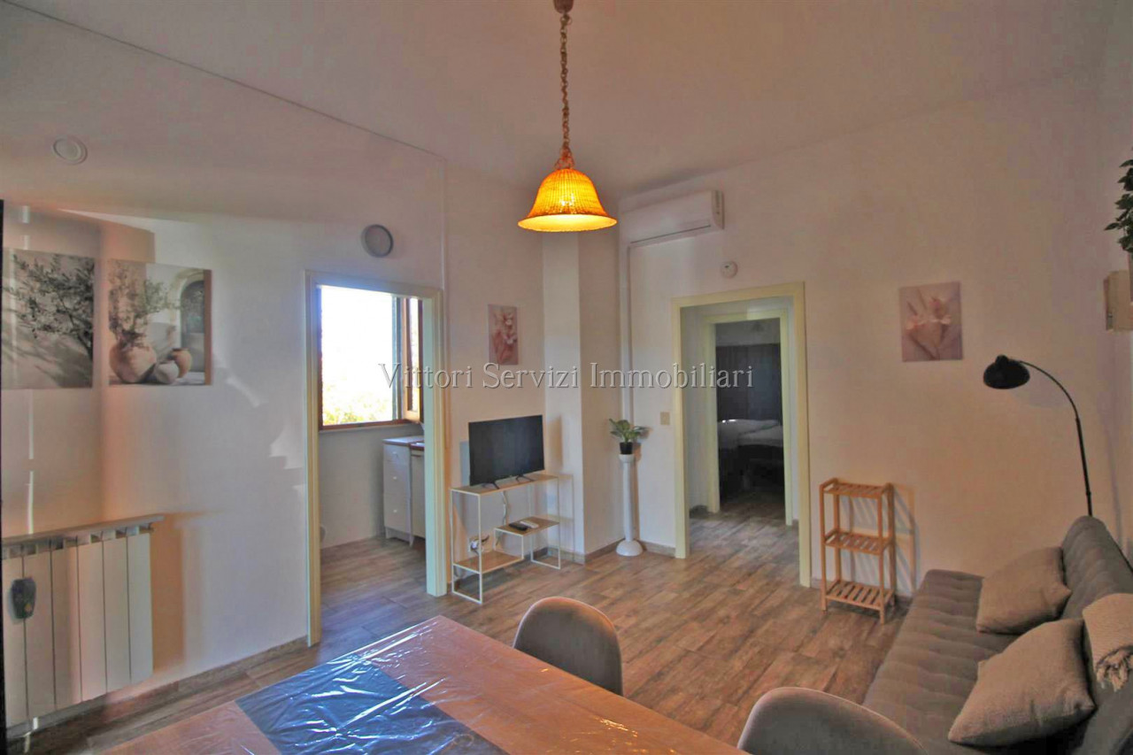 In zona collinare, con bella vista panoramica, si propone la vendita di villa di complessivi mq. 370 con giardino privato ed uliveto di complessivi mq. 2500. La proprietà si compone al piano terreno di: A) Bilocale di mq. 48 con soggiorno con cucinotto, camera e bagno finestrato con doccia. B) Trilocale di mq. 72 con soggiorno con angolo cottura, due camere matrimoniali, bagno finestrato con doccia e ripostiglio. Entrambe le unità sono state oggetto di ristrutturazione nel 2010. Al piano primo troviamo ulteriore appartamento di mq. 126, da recuperare, composto di ampio soggiorno e cucina con affaccio su terrazza abitabile, due camere matrimoniali, camera singola con bagno privato, bagno principale finestrato con doccia e studio. Completa la proprietà locali ad uso magazzino al piano seminterrato di mq. 100 e locali accessori (vano tecnico e monolocale) di mq. 24 al piano terreno. Contesto tranquillo immerso nel verde a breve distanza dai principali servizi.
